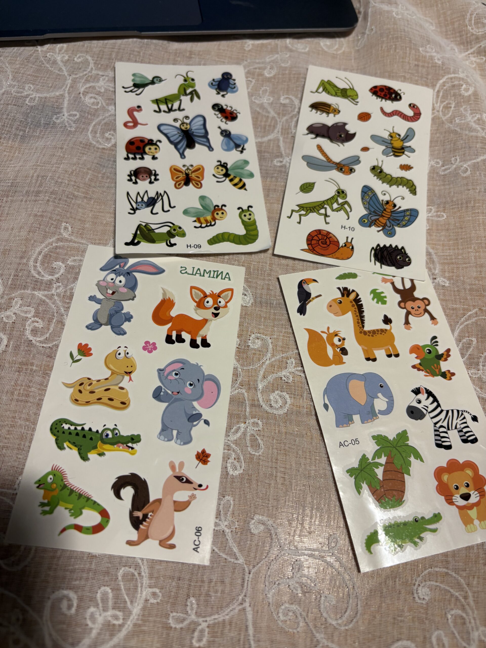 – üks leht ajutisi tatoveeringuid (vähemalt 7 pilti),